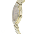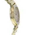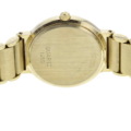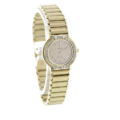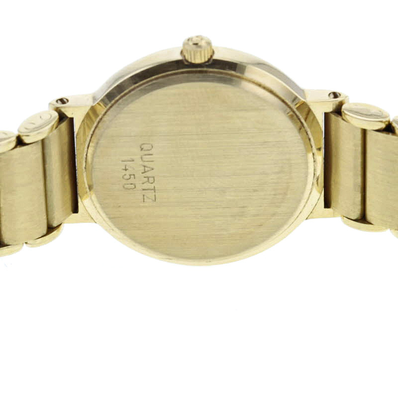 Materialien und Verarbeitung: Gehäuse und Armband bestehen aus 14 kt Gelbgold, das warm schimmert und den noblen Charakter der Uhr unterstreicht. Die Lünette aus 14 kt Gelbgold rundet das Erscheinungsbild ab. Der Arm- und Gehäusebesatz mit Diamanten verleiht der Uhr einen luxuriösen Glanz, ohne die Silhouette zu überladen. Das Armband ist 18 cm lang und verwendet eine Klappschließe aus Gelbgold, die sicheren Halt schenkt.