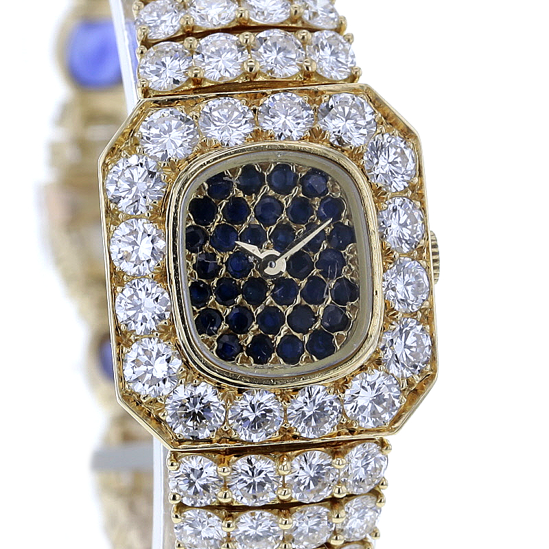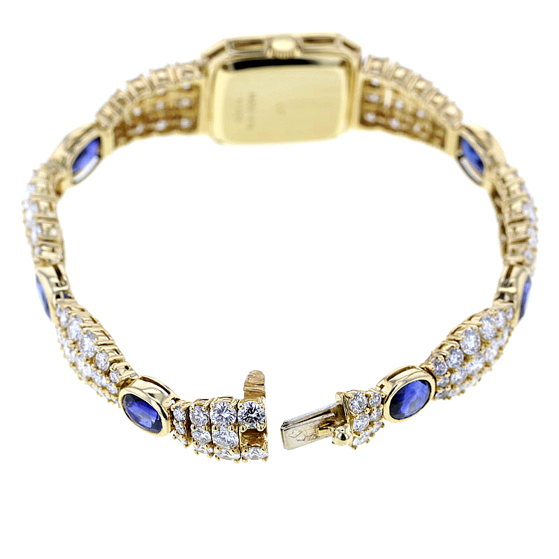 Piaget opulente Schmuckbanduhr – Gelbgold 750/-, 145 Brillanten, 34 Saphire