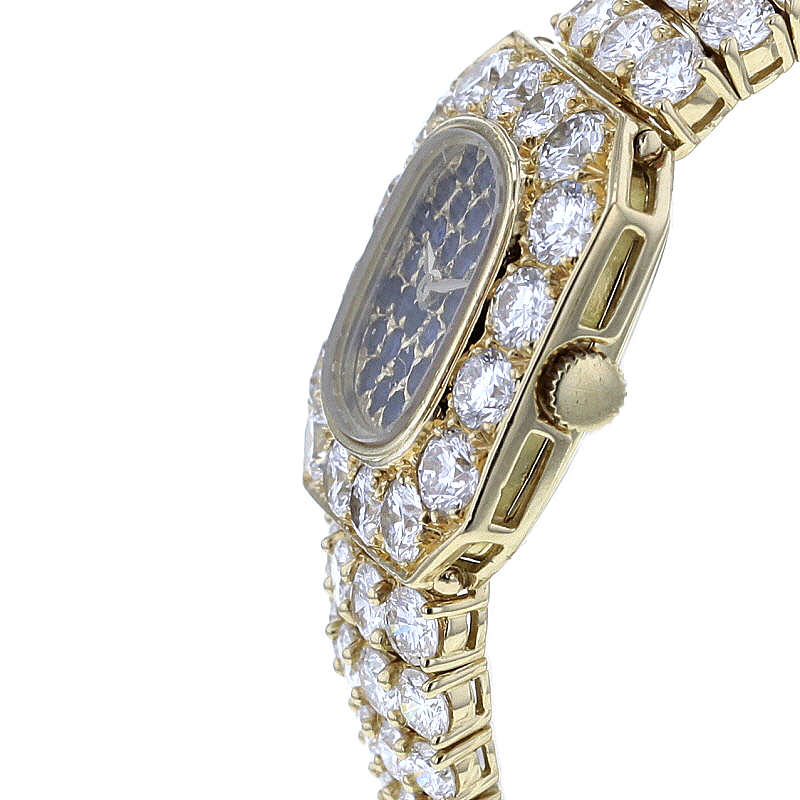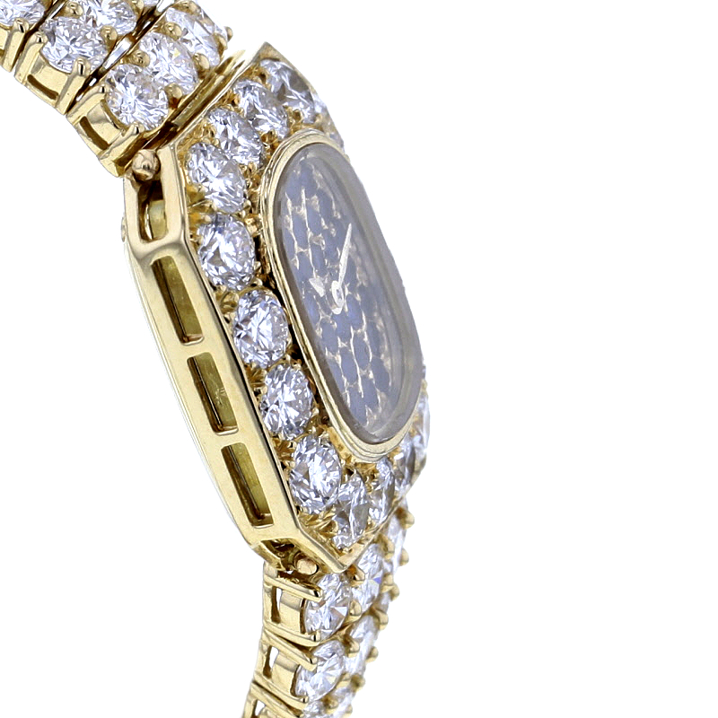 Werk und Funktionen: Die Uhr wird von Handaufzug betrieben, Kaliber 4P1, und konzentriert sich auf die wesentlichen Anzeigen Stunde und Minute. Die Schaltung wird durch präzise Mechanik gewährleistet, gepaart mit dem zeitlosen Charme einer Piaget Schmuckuhr.
