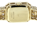Gehäuse, Zifferblatt und Glanz: Das Gehäuse misst kompakte 19 x 20 mm bei einer Höhe von 6,2 mm und wird von einer 18 kt Gelbgold-Lünette eingefasst. Das Zifferblatt präsentiert sich in dezentem Saphirglas, verleiht dem Ensemble Tiefe und Schutz zugleich. Die Gravur- und Schmuckseite wird durch 145 Brillanten am Gehäuserand und Bandtributingen zu einem atemberaubenden Funkeln erhoben. Zusätzlich setzen 34 Saphire funkelnde Glanzpunkte, welche die helle Gesamtoptik zusätzlich betonen.